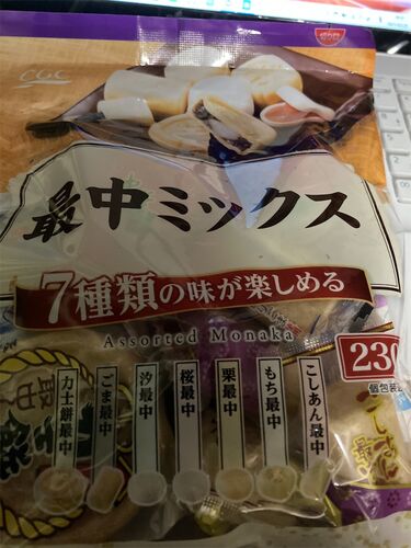 おはようございます ふくすけ CGC 最中ミックス 7種類の味が楽しめる だよ こちら 裏 中身 名前が 気に入ったので こちらを ちょいす 裏 中身 餅入りだけど うまく 二つに 割れなかったので 省略します 今日は こちらで 待ち構えって ふくすけ それでは パト…