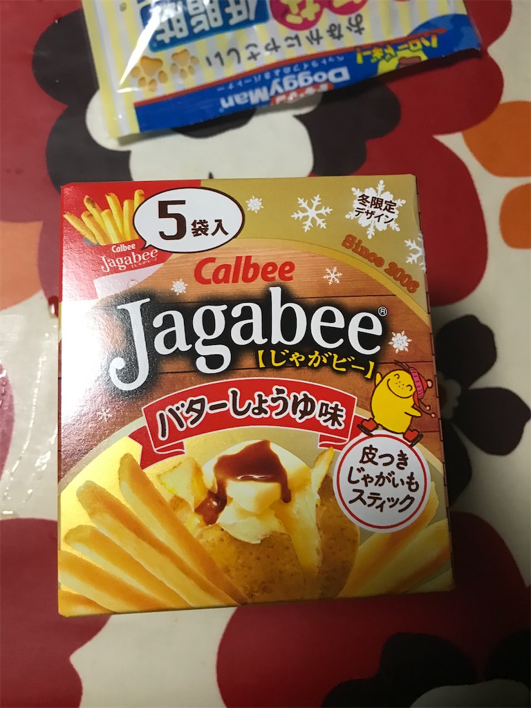 今日のおやつは ジャガビー バターしょうゆ味だよ